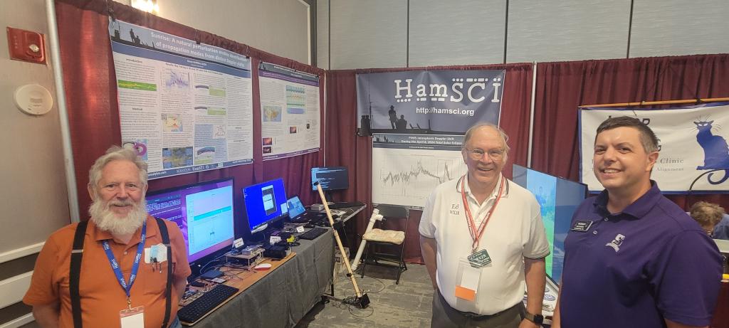 HamSCI was well represented at the 2025 Northeast HamXposition, held 21-24 August, in Marlborough (Boston), Massachusetts. Our booth attracted many visitors armed with questions and a strong fascination for what we do. The booth featured working GRAPE receivers of various 'flavors' (GRAPE 1, GRAPE 1 DRF and GRAPE 2), a live display of the new SDR PSWS installation at K3LR plus an array of posters highlighting both past and active experiments. Overall awareness of our HamSCI efforts appears to be getting better and better!